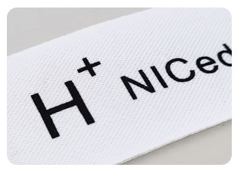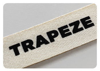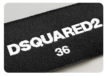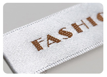 ヒートカットで裁断した仕様で、織りネームの周囲を縫うことで商品に取り付けます。簡単に取り付ける場合、裏面に熱溶の粘着剤をつけることも可能です。 | ![]() |