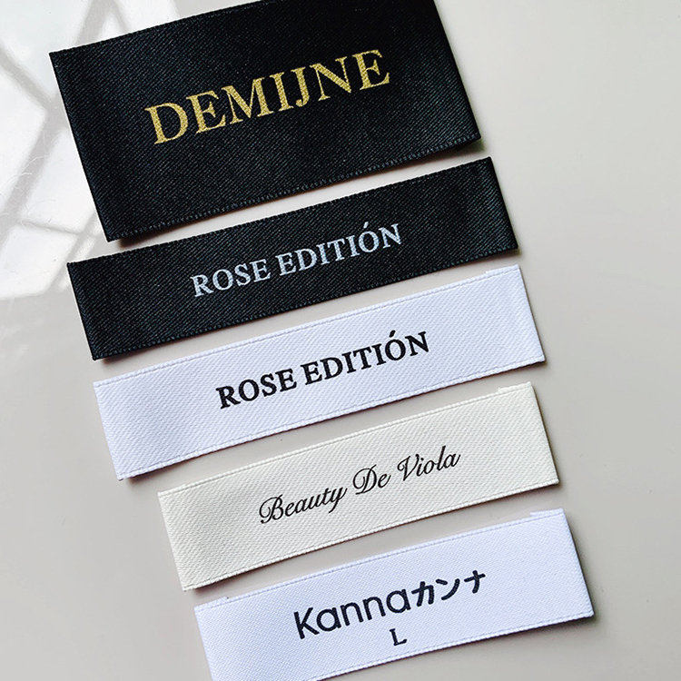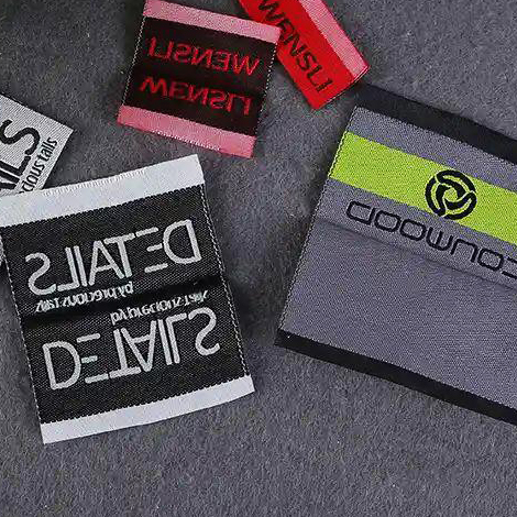 ヒートカットで裁断した仕様で、織りネームの周囲を縫うことで商品に取り付けます。簡単に取り付ける場合、裏面に熱溶の粘着剤をつけることも可能です。 | ![]() |